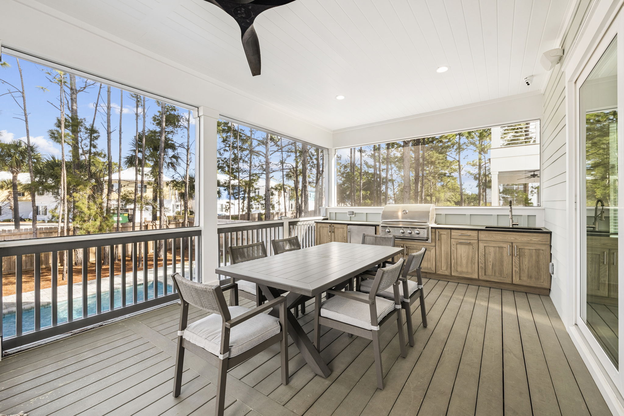 Welcome to The Salty Armadillo! New listing, same beloved beach home! (Reviews were reset during a property manager change, but we’re thrilled to welcome new guests and earn fresh 5-star feedback.) Just 3 minutes away, the brand-new Seagrove Regional Beach Access (across from Café Thirty-A) offers 60 parking spots, ADA-accessible boardwalk, restrooms, outdoor showers, seasonal lifeguards, and permitted beach bonfires, making your beach days effortless and unforgettable. --- 🏖️ Luxury Beach Retreat in Seagrove Your pet-friendly, family-ready getaway awaits in the heart of Seagrove Beach, Florida. This stylish vacation rental includes a private saltwater pool, 6-seater street-legal golf cart (LSV), and 5 beach cruiser bikes, all complimentary with your stay. The Salty Armadillo’s beach stash is in the garage: 5 chairs, boogie boards, towels, and a tent; just tote it to the sand in foldable wagon and enjoy! No need to splurge on beach gear, our garage is stocked with everything you need for a sandy escape. --- 🍹 Outdoor Living, Elevated Unwind in the fenced backyard featuring a large pool, outdoor kitchen, built-in grill, and screened-in porch with tranquil wooded views. Whether you’re grilling, lounging, or sipping coffee, it’s perfect year-round. --- 🍽️ Designer Touches & Chef’s Kitchen Inside, enjoy hardwood floors, 10’ ceilings, crown molding, and a chef’s kitchen with Thermador appliances, quartz countertops, soft-close cabinetry, and a smart range with dual ovens. The dining area flows seamlessly to the screened terrace for indoor-outdoor living. --- 🛏️ Room for Everyone – Sleeps 17 • Main Floor: Master suite with en-suite bath and walk-in closet, coastal-inspired living room, and half bath • Upstairs: Second living area with drink fridge and balcony access, plus second Master suite and 2 more bedrooms including a custom bunk room that sleeps 8 in four queen beds • Sleeps 14 in bedrooms, plus 3 more on high-quality memory foam twin mattresses + 1 mini crib + 1 toddler size memory foam mattress --- 🐾 Pet-friendly upon approval. Pets must never be left alone in the home. 📍 Walkable to beach access (4.5 minute slow stroll), dining, and boutique shopping